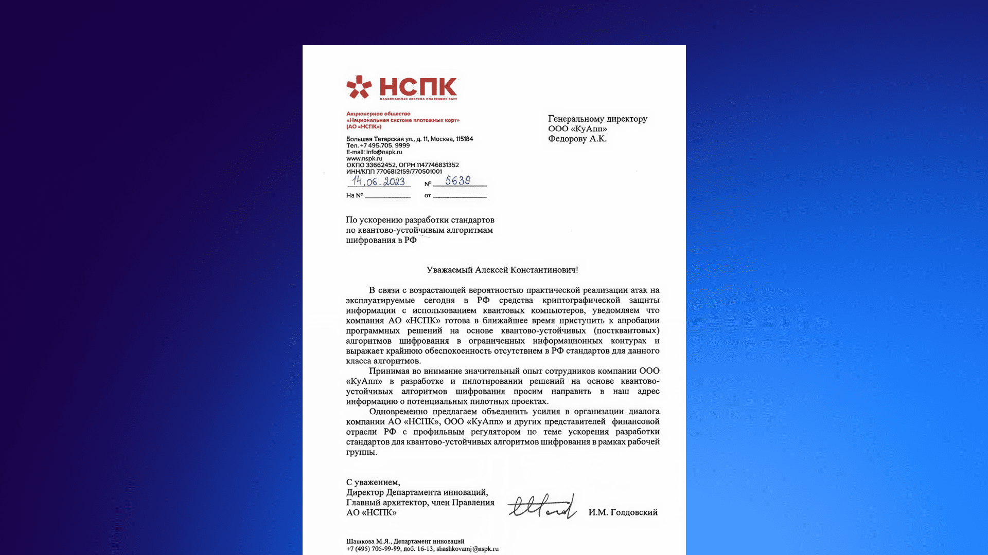 НСПК благодарственное письмо 2023