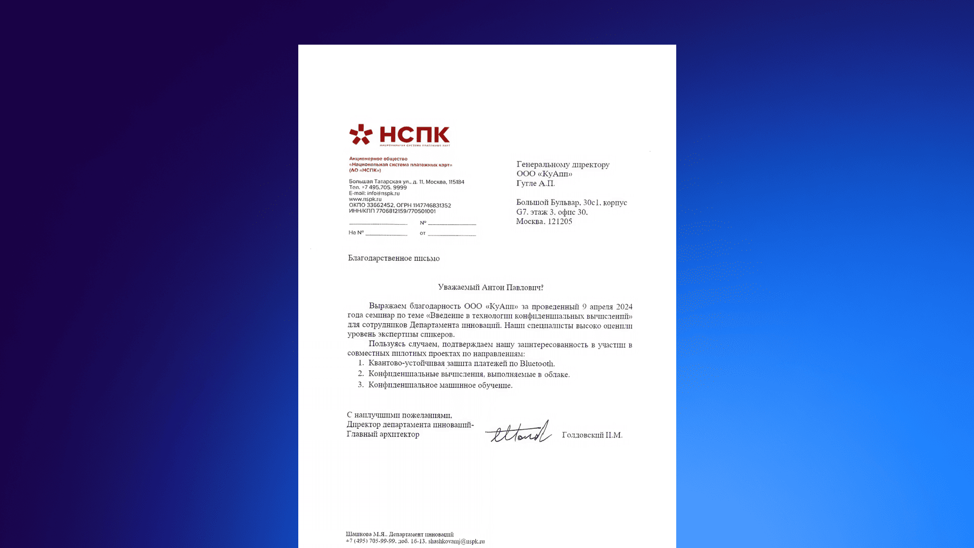 НСПК благодарственное письмо 2024